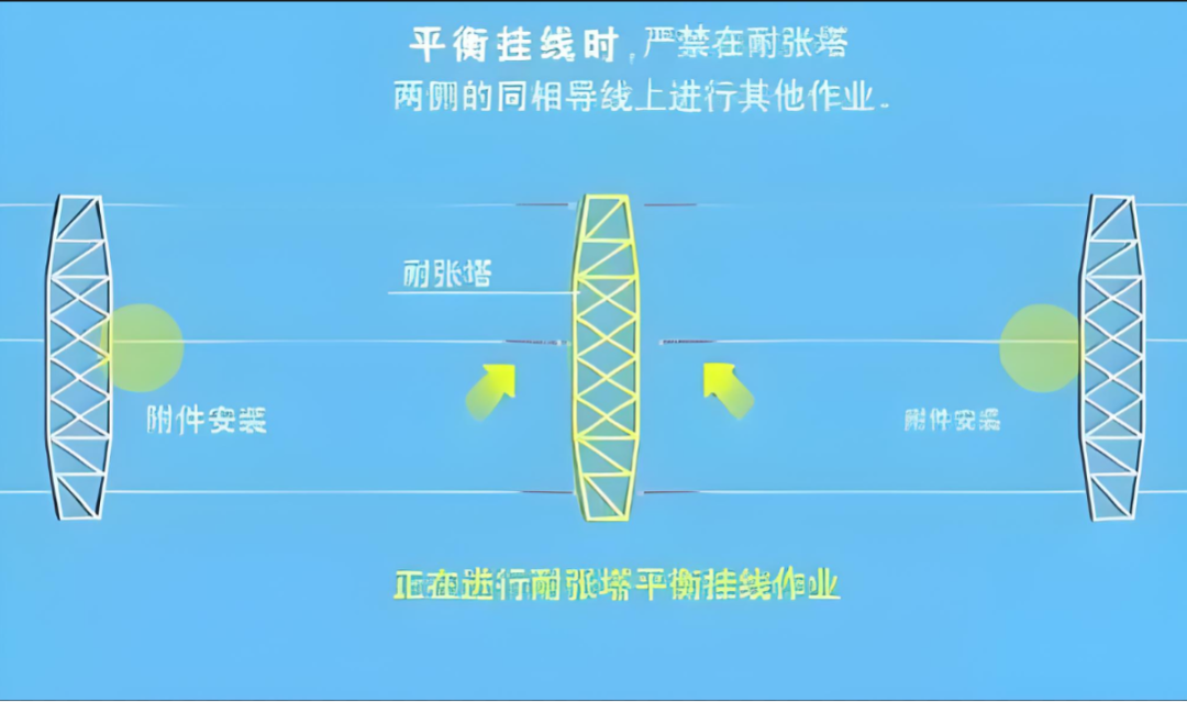 平衡挂线时,在同一相邻耐张段的同相导线上进行其他作业